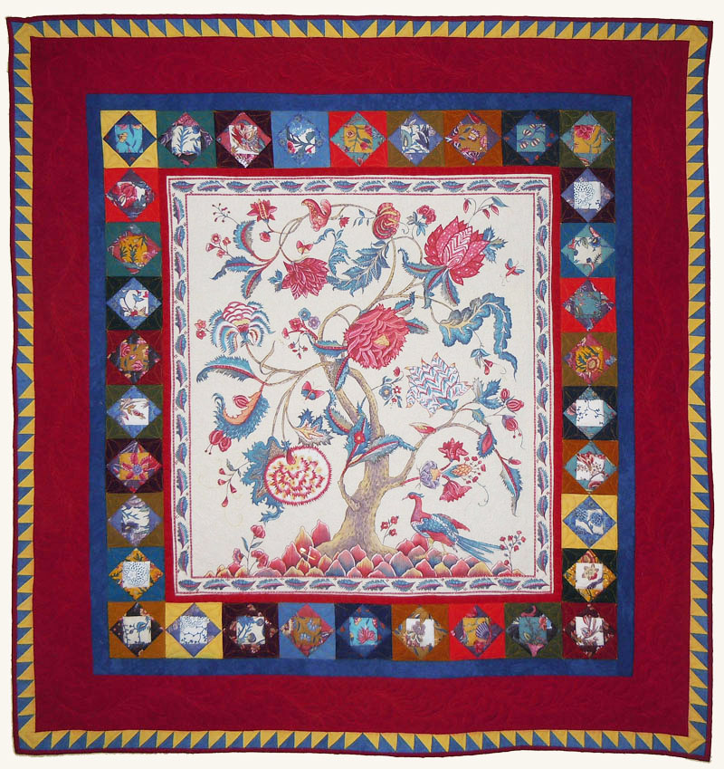 The purchase of a group of reproduction Dutch chintz fabrics inspired this take on an 18th century Tree of Life medallion quilt.